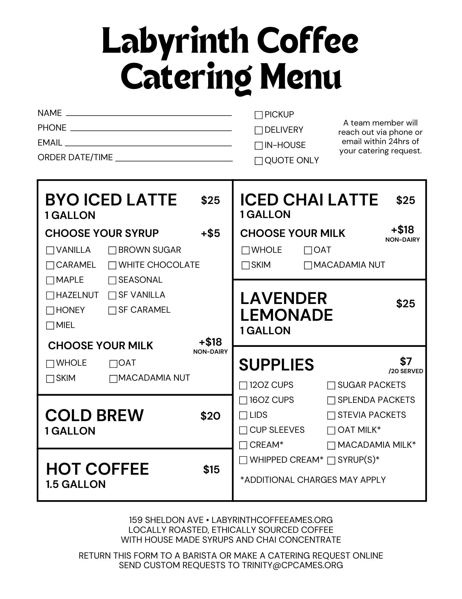 Food catering is also available! Contact manager Trinity at trinity@cpcames.org for info.